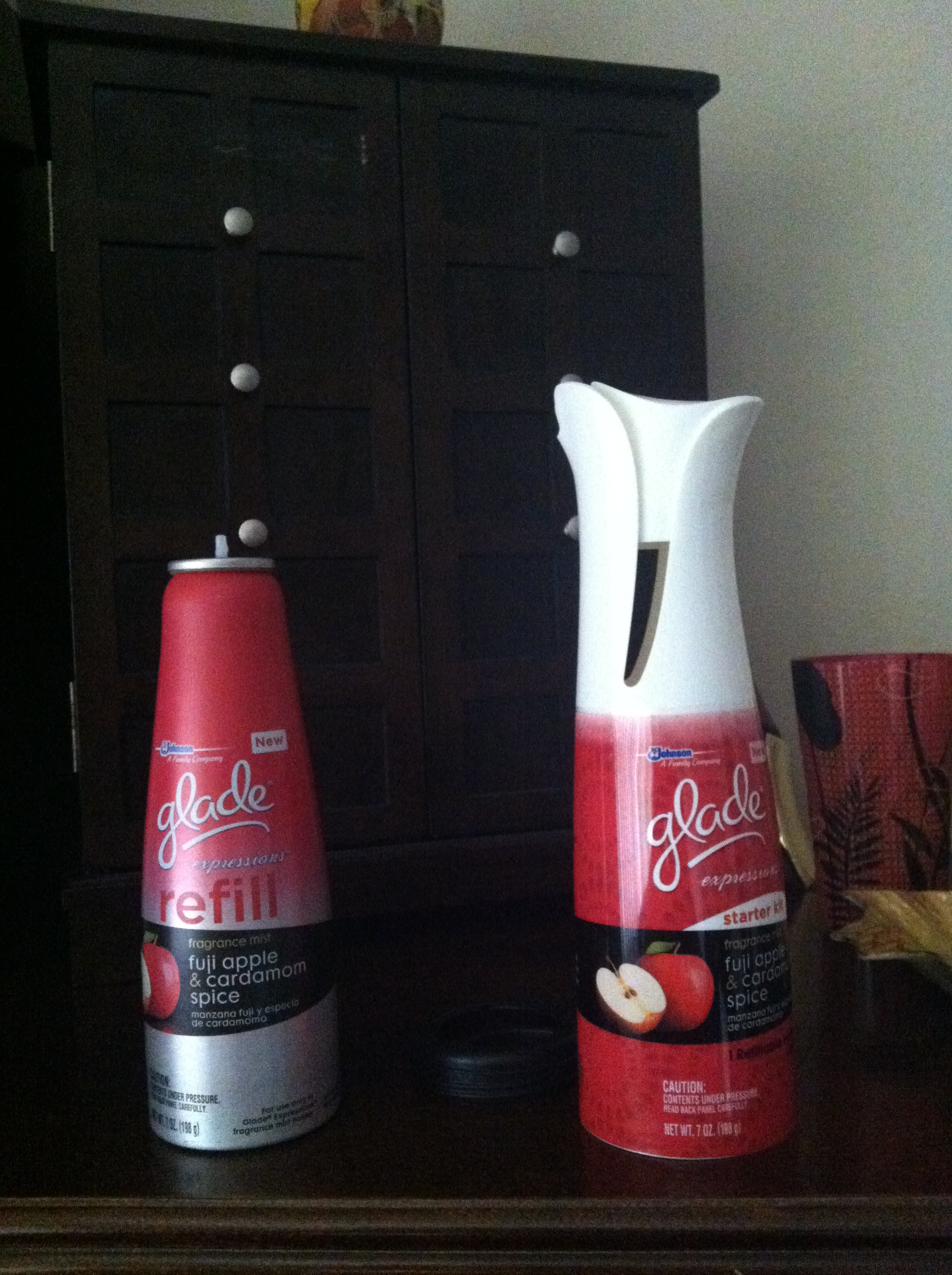 Also in the Glade Expression Collection is the Spray Kit. I wasn’t able to buy it before because they did not have a scent that I would normally like. I caved in got the Fuji Apple & Cardamom Spice, thinking that with the Holiday’s around the corner it would be a nice homey fragrance.