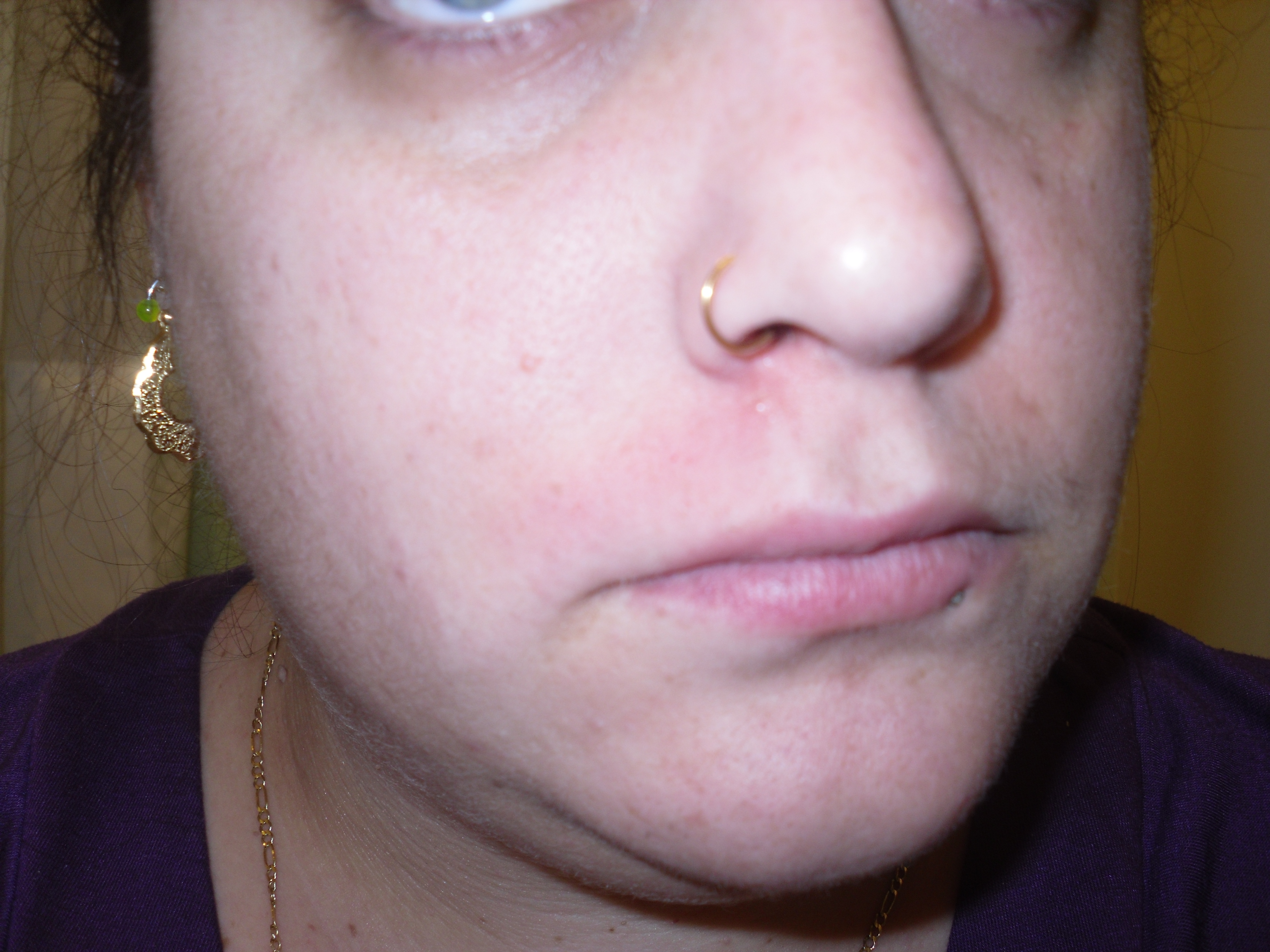 The red part towards my nose is where the wax would not relent. It did take a turn for the worse on the other side. I ended up bleeding a bit. Afterwards you rub some lotion on it (it is included in the kit) and now a few hours later it really is quite smooth and no longer red. The kit also includes a pair of tweezers and a brow shaping kit. For the price, $6.95, it did a good job. It isn’t perfect but it is a nice alternative to paying upwards of $20. I am not sure if I will use it on my brows but for lip and chin hair, I will definitely use again. I still have quite a bit of the wax left so I am confident it will last at least 10 more uses.