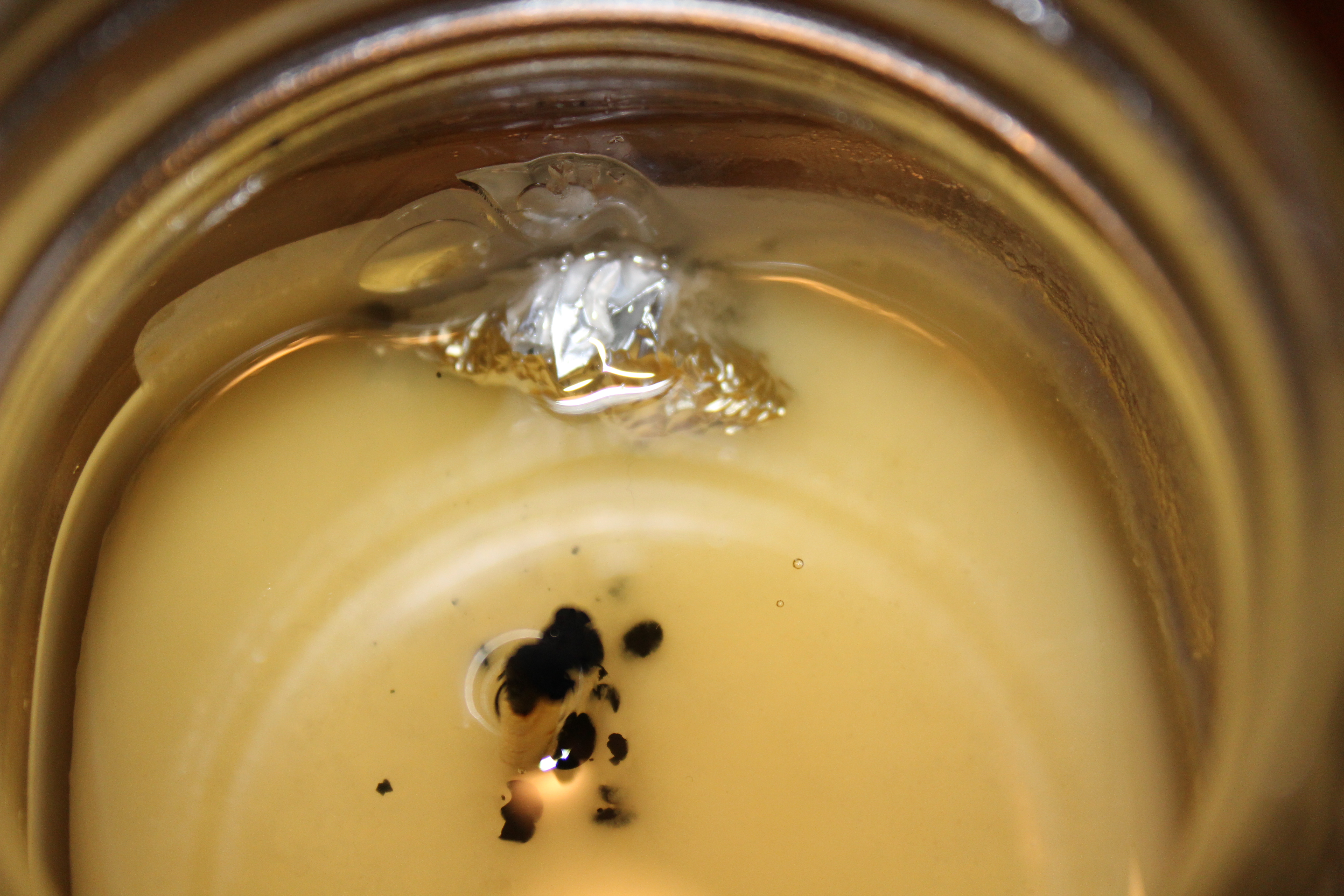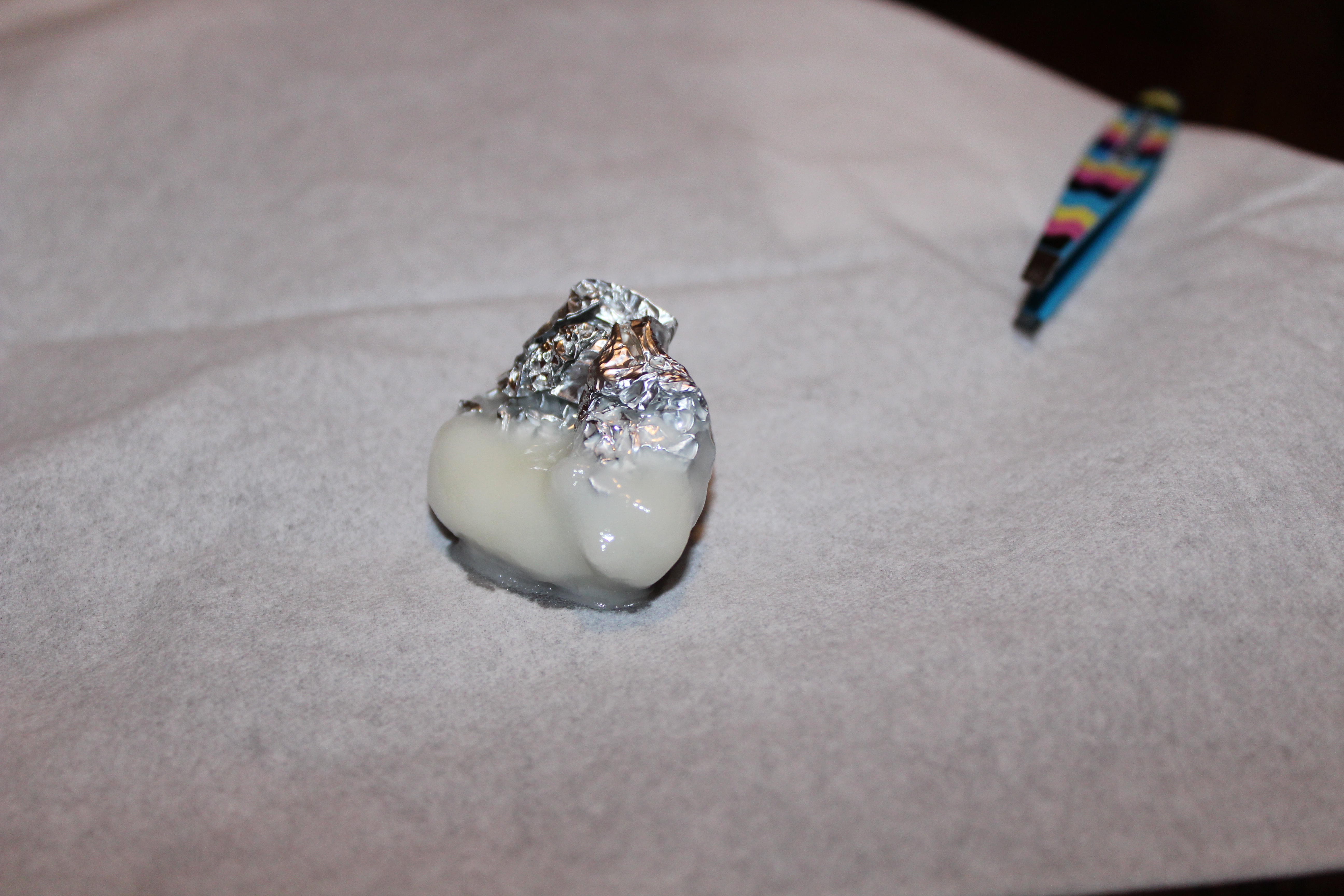 As you can see, I didn’t properly trim the wick and it got all gross. My bad. But this moment is my favorite part, when the foil wrapper starts to peak through. I tried to grab it but I had to wait.