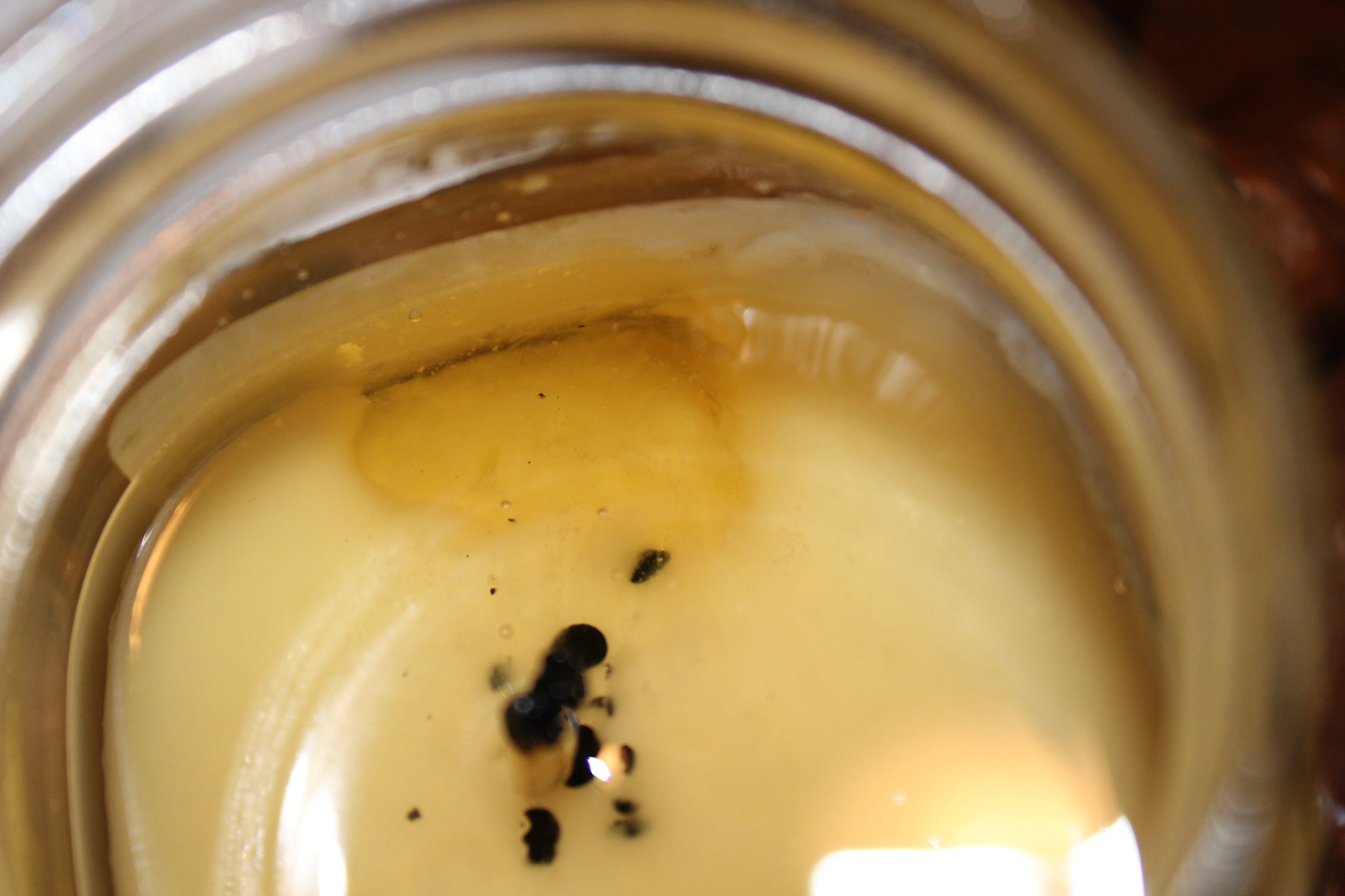 I had to wait a few more hours until I could grab it. I can’t remember how the diamond candle was but this company uses a little adhesive strip to stick the foil wrapper to the side of the jar. This meant I had to wrangle it out a bit more than I thought I was going to have to which left a huge divot in the wax.