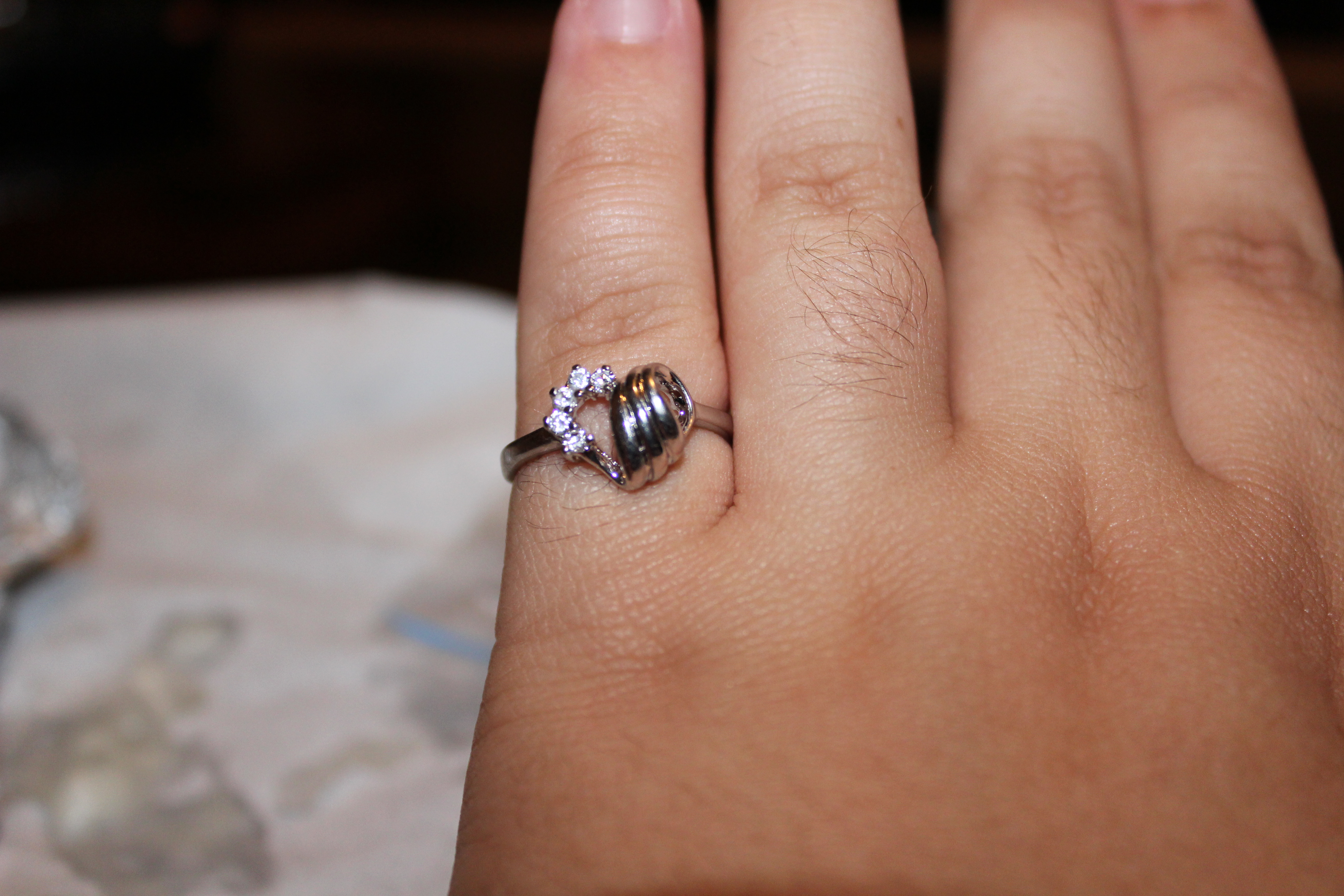 Ooh-la-la. It was a beautiful silver ring with a nice gem stone probably valued around $20. The only problem was that even with choosing a size 9, it came a bit small. I ended up giving it to my little sister because she really liked it and to be honest, I ordered like 20 candles so I was going to end up with more rings. (Also–ignore my hairy knuckles.)