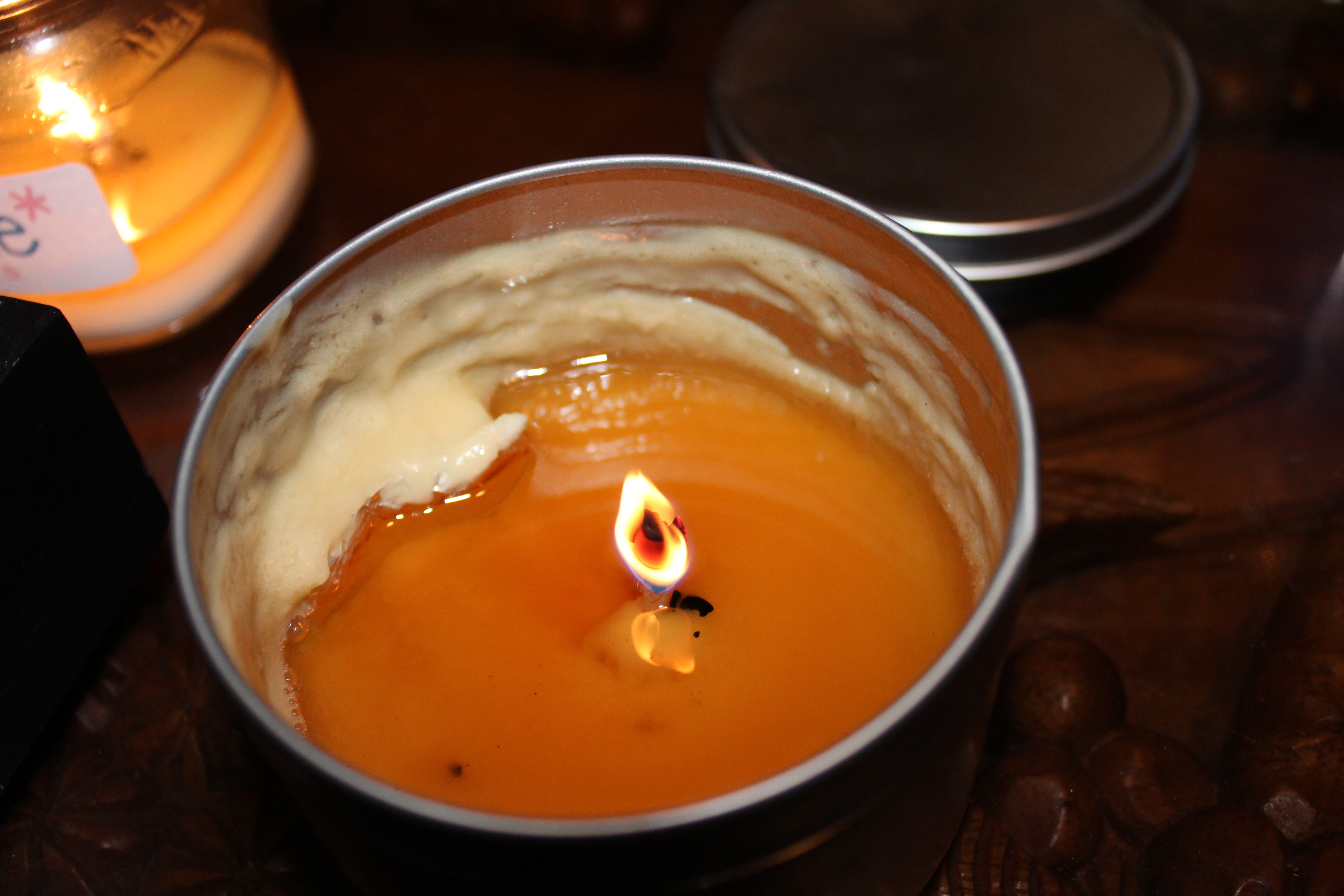 So my problem with this candle is that it was so wide, it didn’t fully melt the wax on the sides of the pot. This meant the wax on top of the foil wrapper didn’t fully melt. I am not sure it was a fluke thing but I will probably stick with the jar candles because of this.